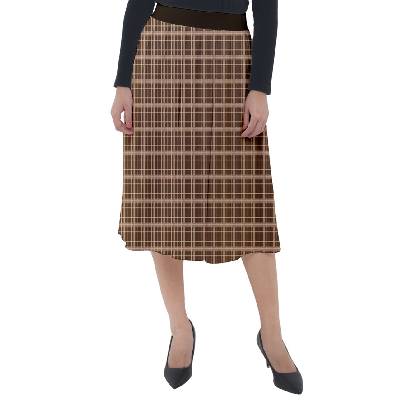 Brown Academia Classic Velour Midi Skirt