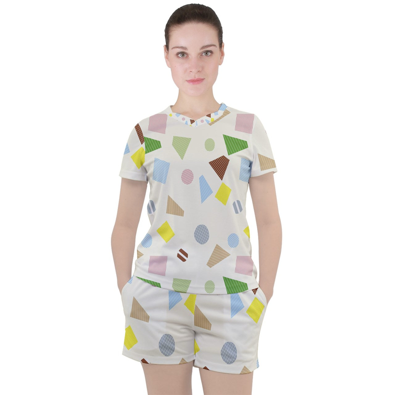 Add your own designs to this tee and shorts sport set to transform it into part of your new favorite work out gear!