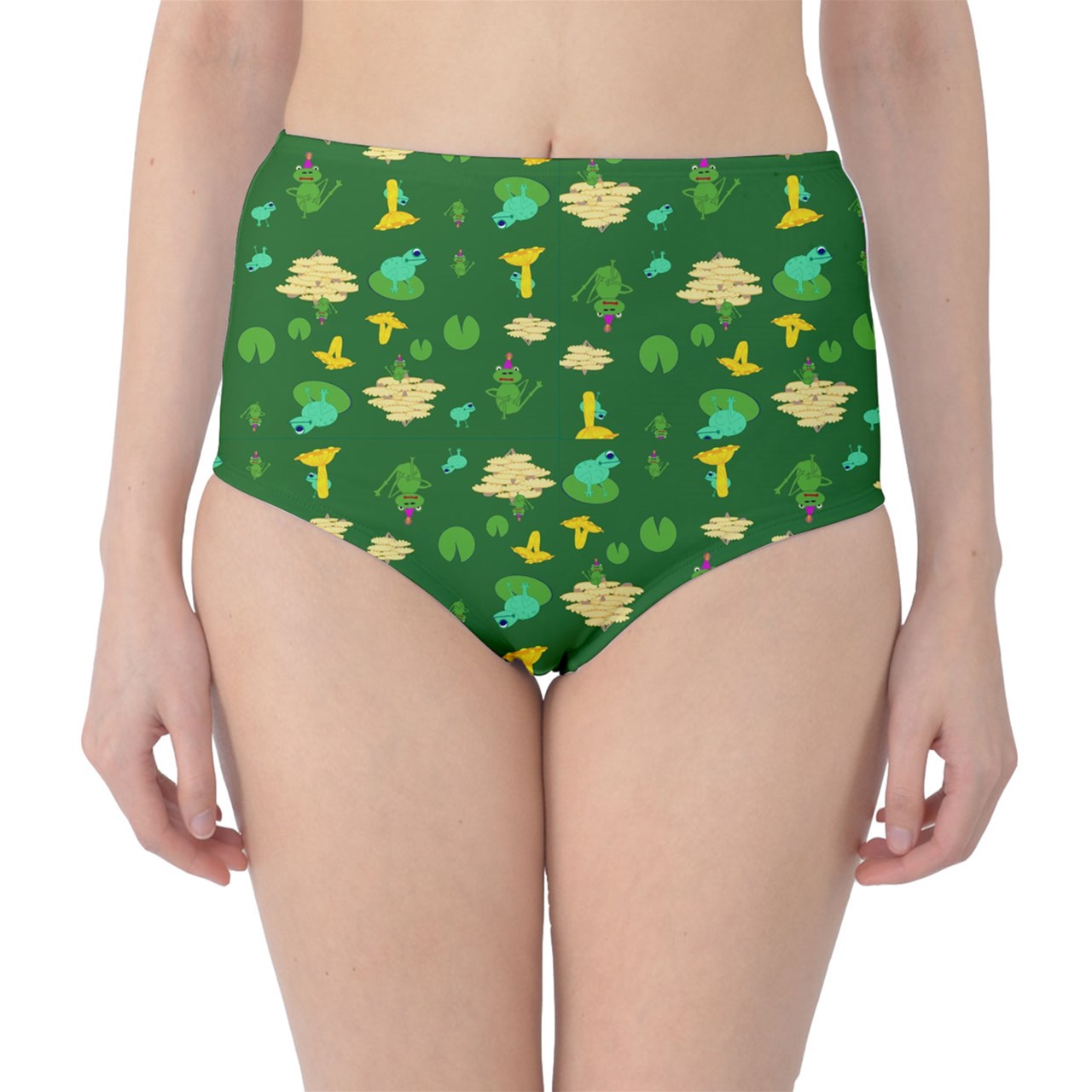 Mushroom Frog Green Classic High-Waist Bikini Briefs