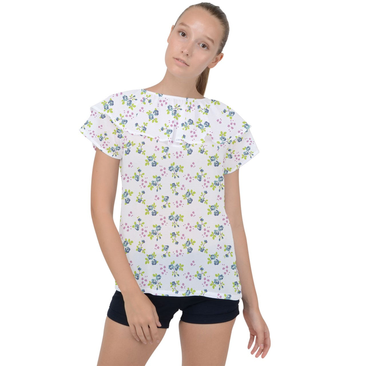 A chiffon blouse with a large statement ruffle collar to make your outfit pop, Customize this to make it the perfect match to your jeans and skirts.
