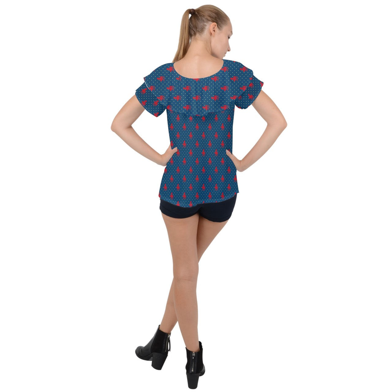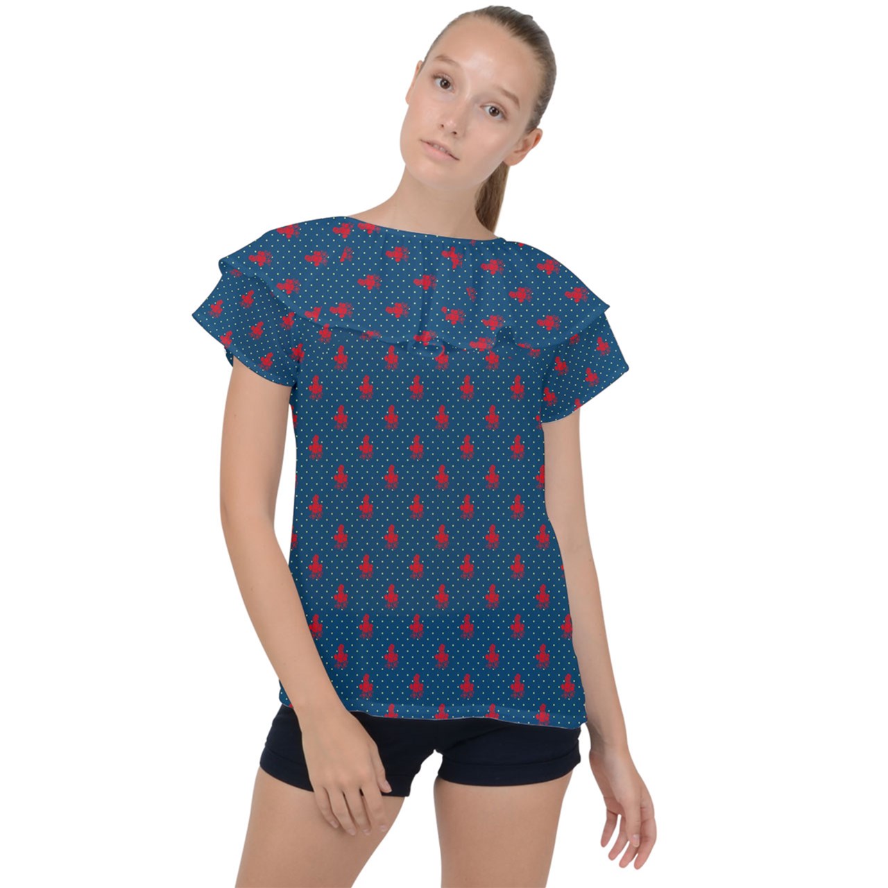 A chiffon blouse with a large statement ruffle collar to make your outfit pop, Customize this to make it the perfect match to your jeans and skirts.
