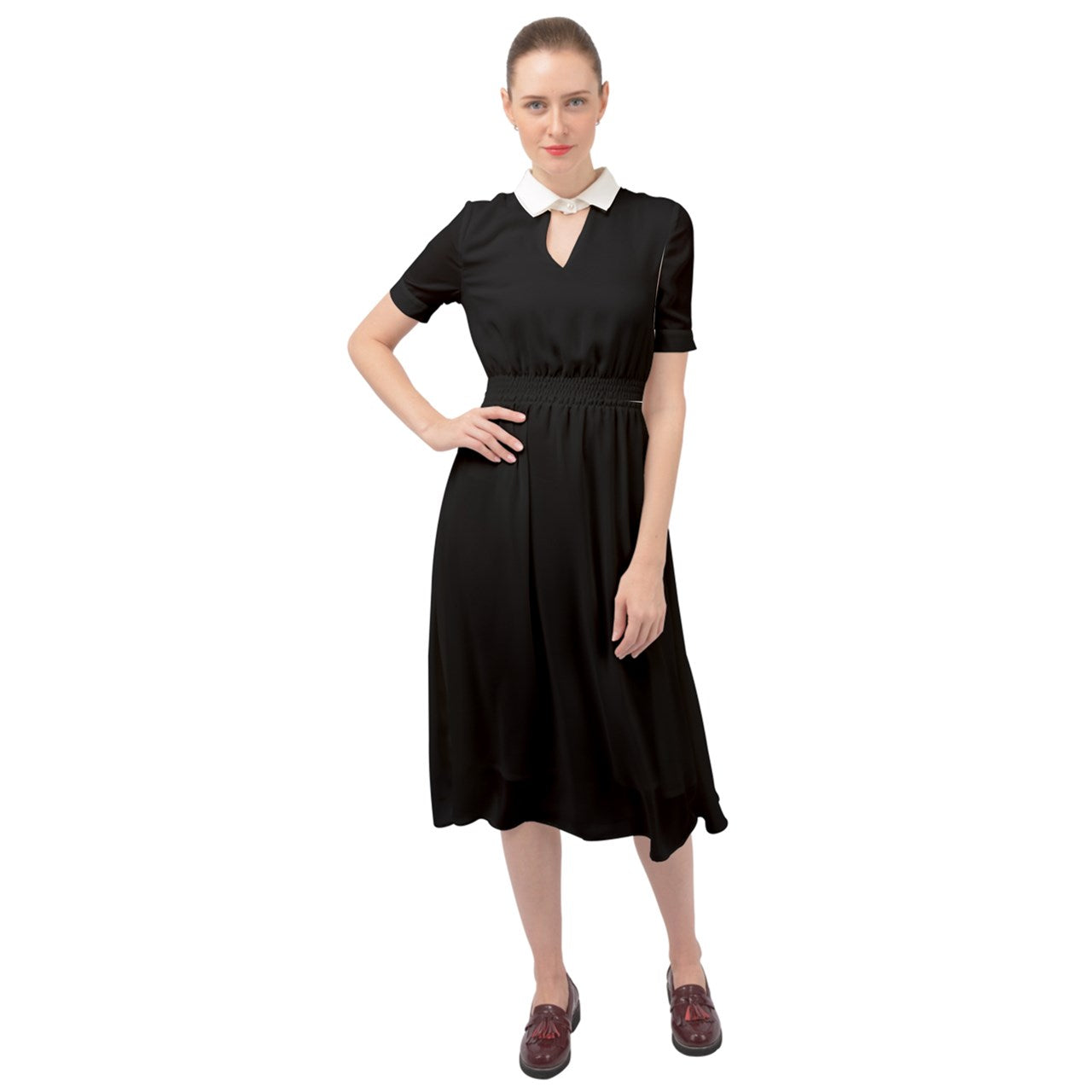 Our chiffon range's new addition midi dress that comes with a cutout neckline. Design it with your favorite prints and artwork to create the perfect dress.