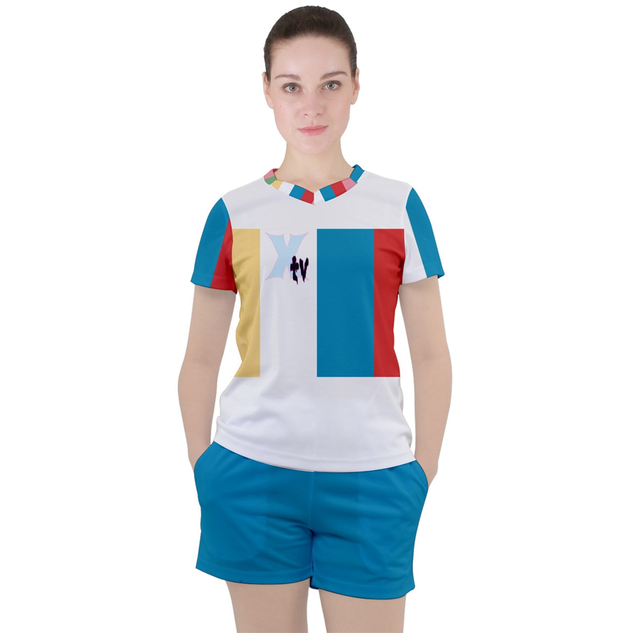 Add your own designs to this tee and shorts sport set to transform it into part of your new favorite work out gear!