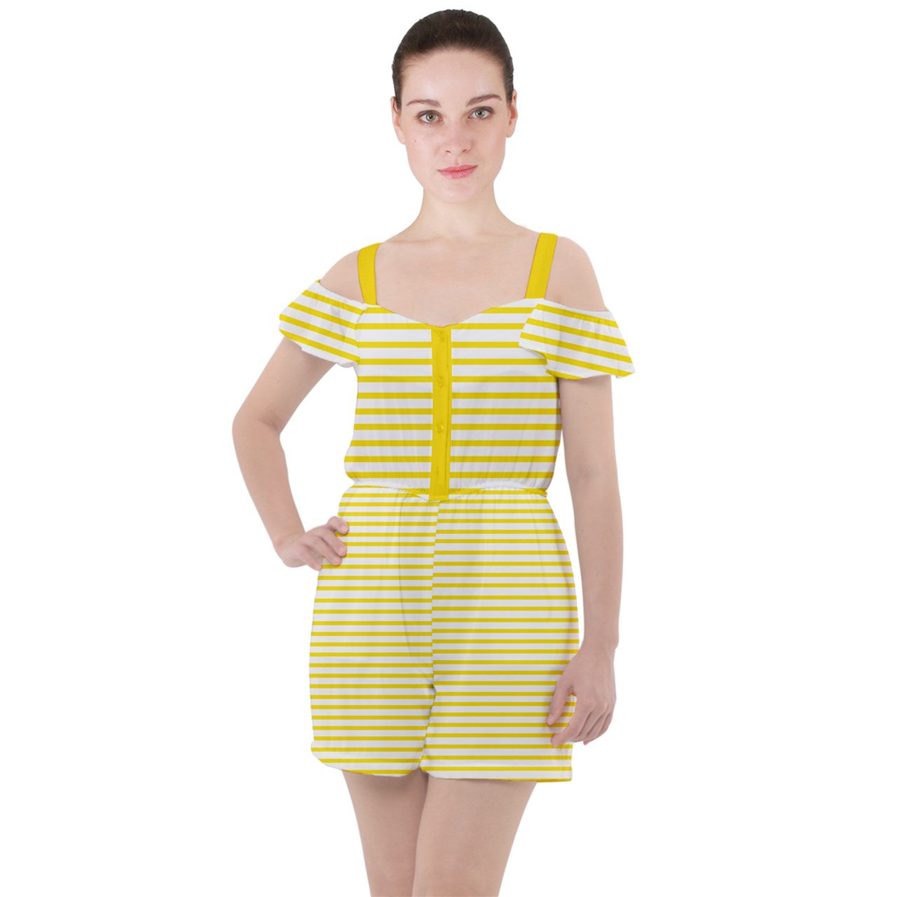 yellow beach stripe Ruffle Cut Out Chiffon Playsuit