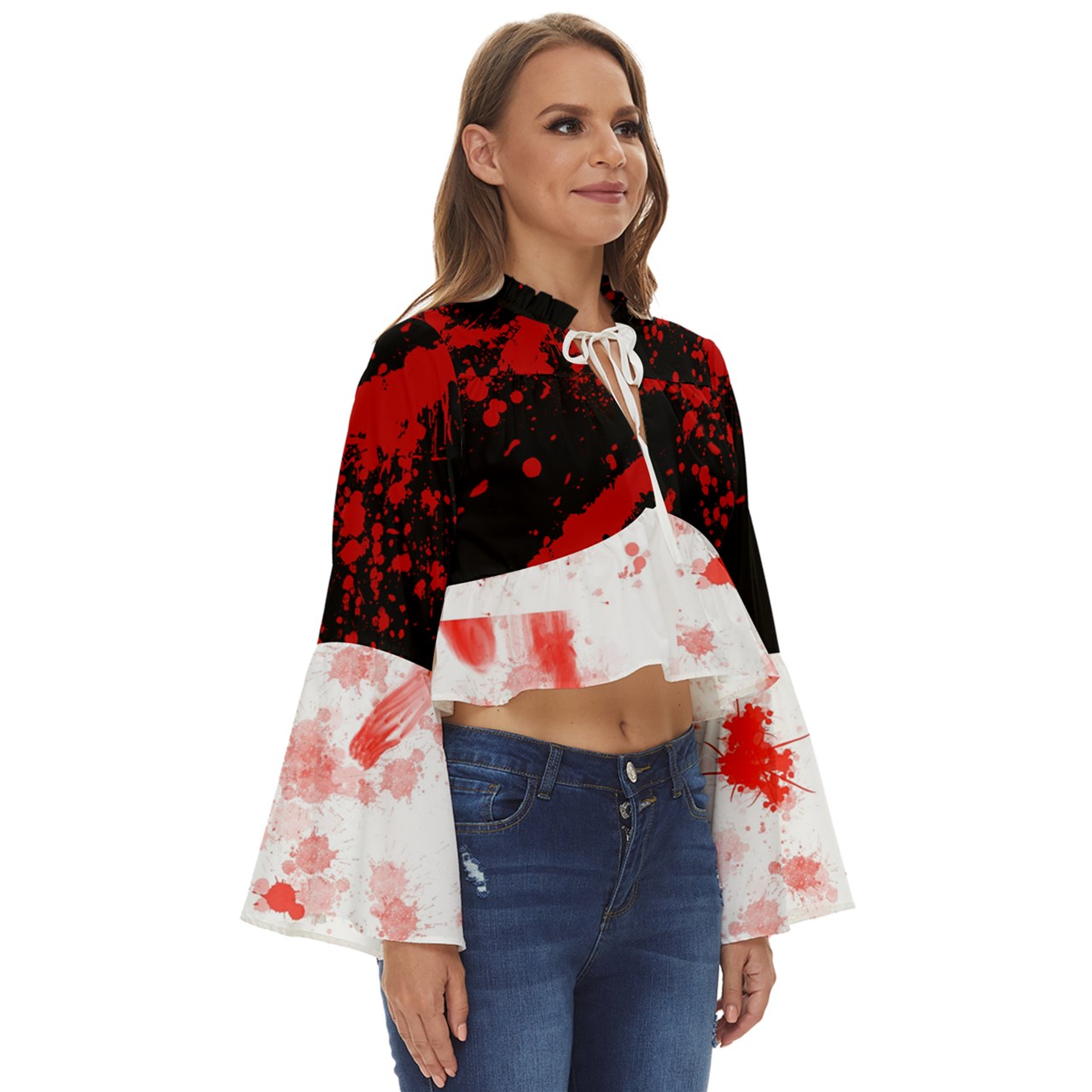 Black Blood Spatter Boho Long Bell Sleeve Top