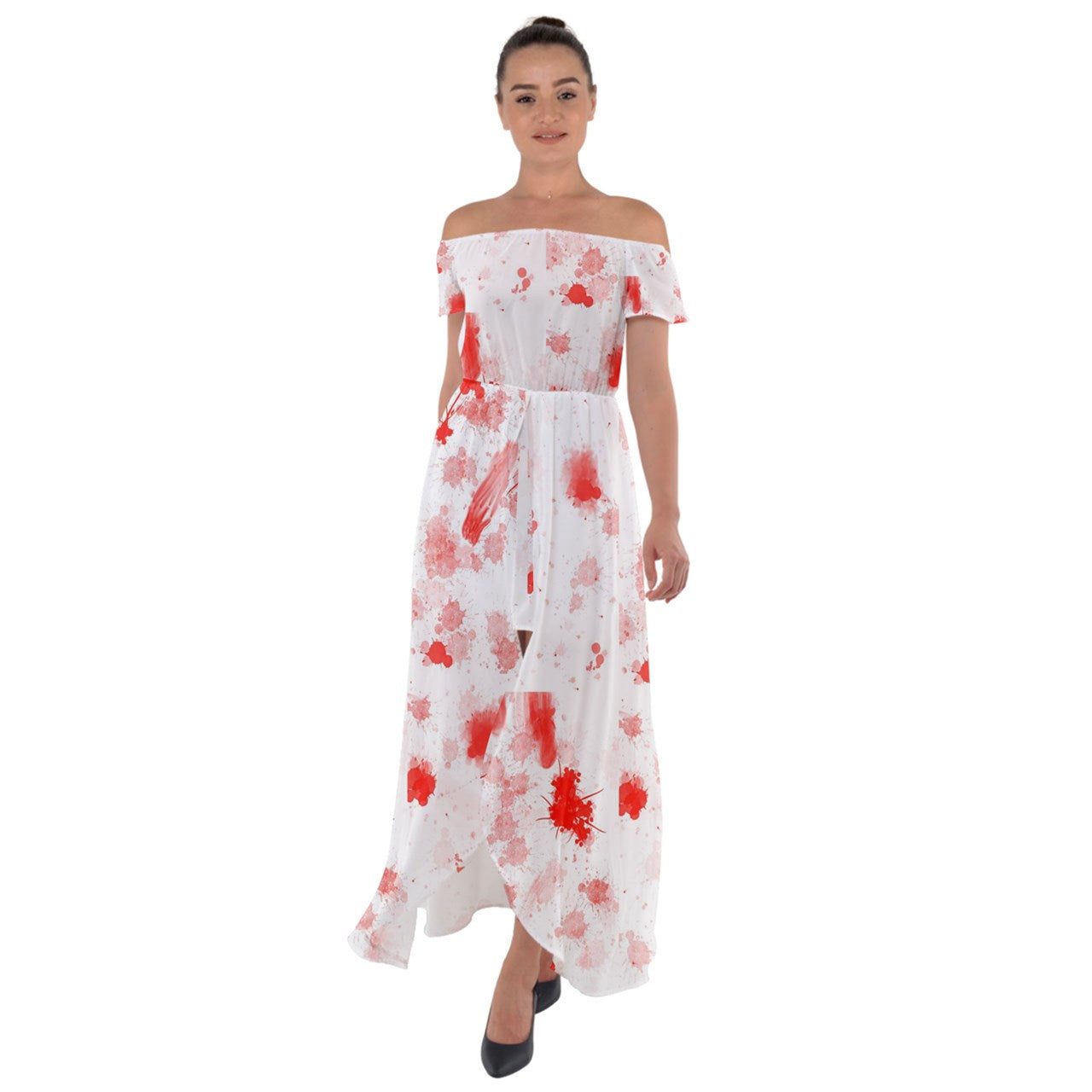blood spatter Off Shoulder Open Front Chiffon Dress