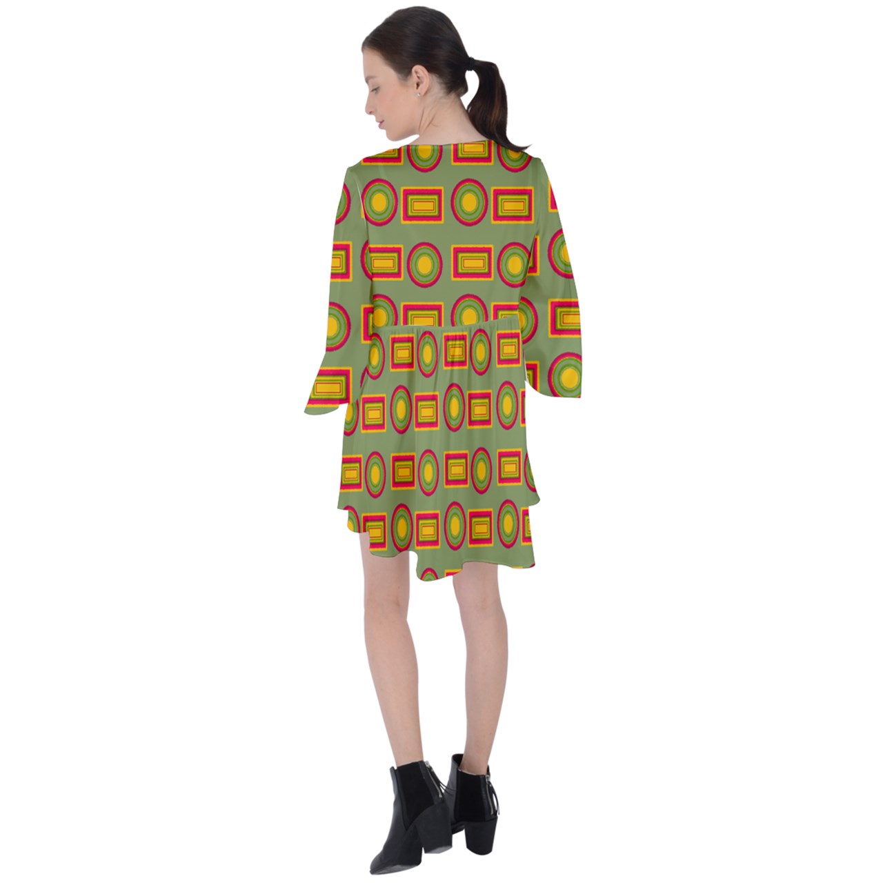 Circle Circle Dot Dot V-Neck Flare Sleeve Mini Dress