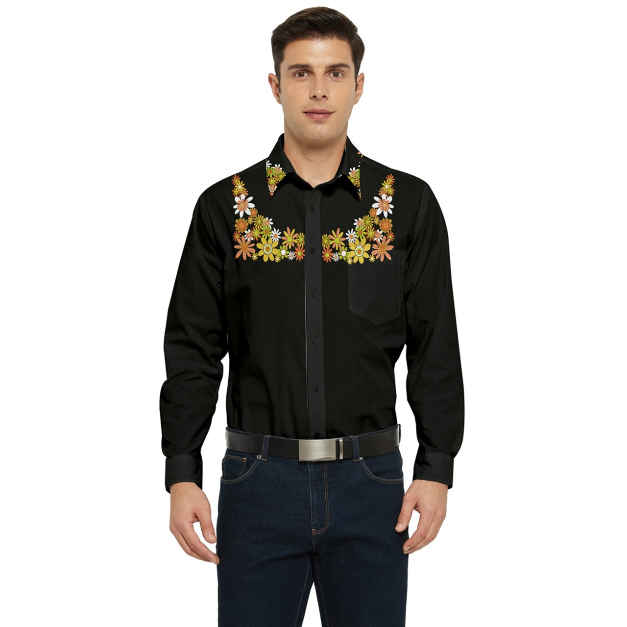 Classic Boho Flowers Collar Long Sleeve Pocket Shirt