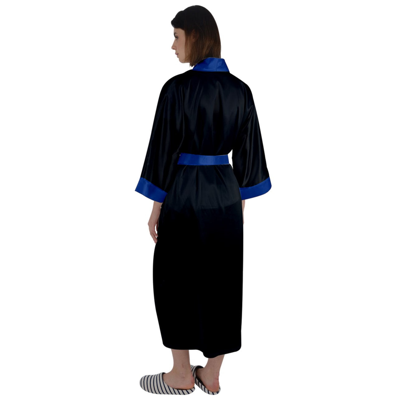This satin robe is the perfect cover up for you to lounge around the house in. The shiny fabric makes printing extra vibrant and sharp as well.