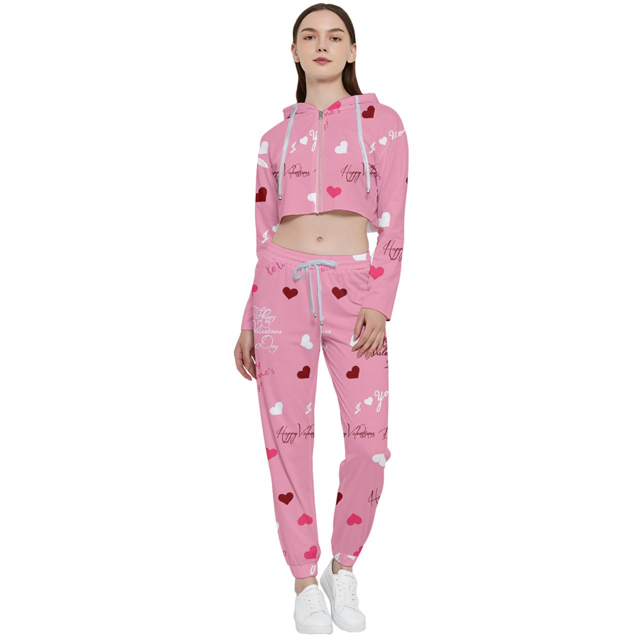 Sweet Valentine's Cropped Zip Up Lounge Set